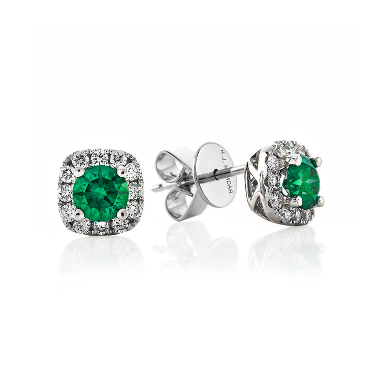 Add a vibrant pop of color to your outfit with these Emerald & Diamond Halo Stud Earrings. Set into 14k white gold, beautiful round emeralds take center stage framed by a halo of glittering diamonds. Easily dressed up or down, they are a versatile addition to any jewelry collection!