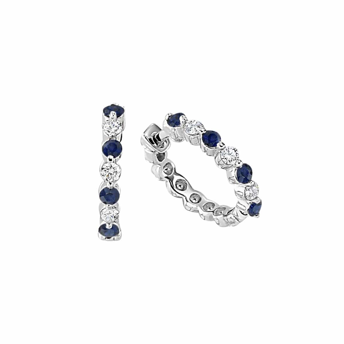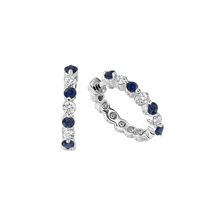 • Blue Sapphire and Diamond Small Hoop Earrings - Diamond Cellar- Diamond Cellar