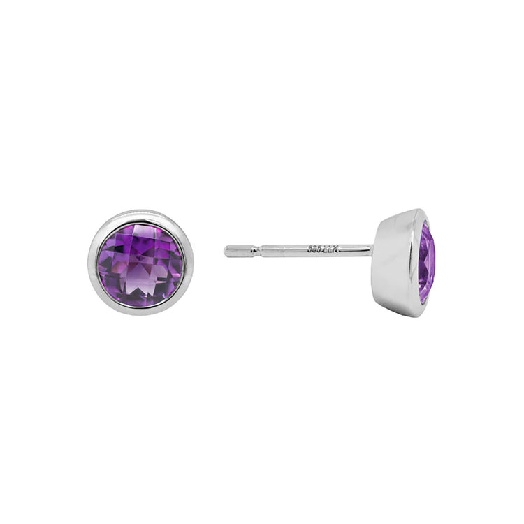 These stunning earrings showcase enchanting round amethysts, elegantly set in 14k white gold. Perfect for everyday wear or special occasions, they make a thoughtful gift for yourself or a loved one.