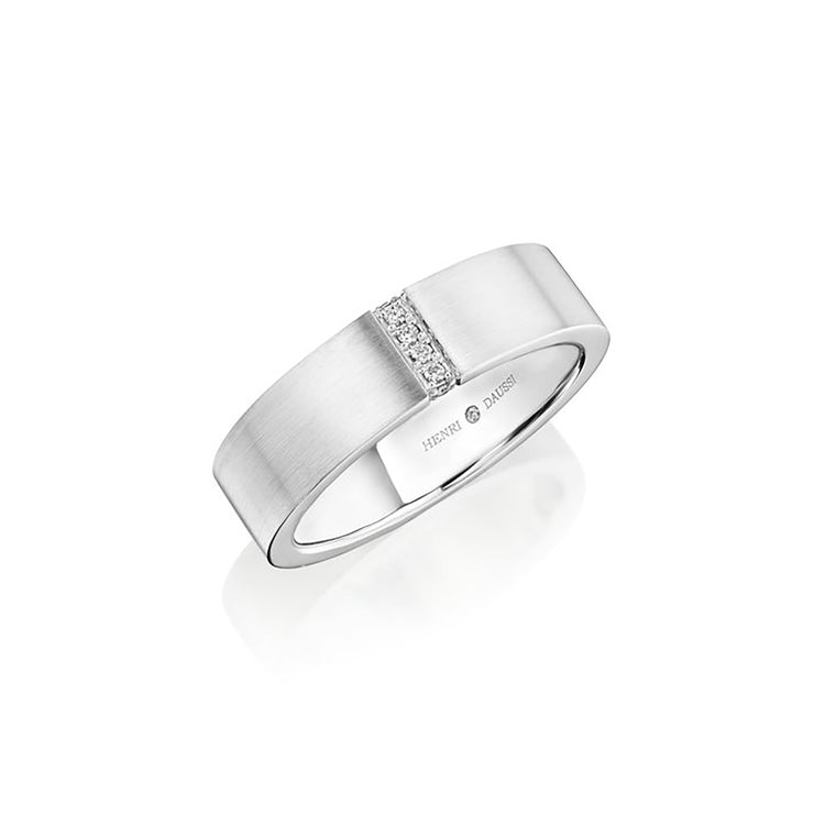 Embrace the balance of light and dark with this diamond band by Henri Daussi. Featuring sparkling round brilliant diamonds on the outside and hidden black diamonds on the inside, this 14k white gold ring is a stunning symbol of enduring commitment through all of life's twists and turns.