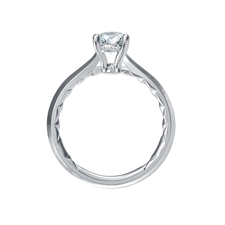 Discover understated elegance with A.Jaffe's beautifully crafted 14k white gold Diamond Semi Mount Ring. Expertly set round brilliant diamonds add a touch of sparkle to the basket and gallery, while a polished shank with quilted interior ensures both comfort and style. Perfect for the modern bride-to-be.