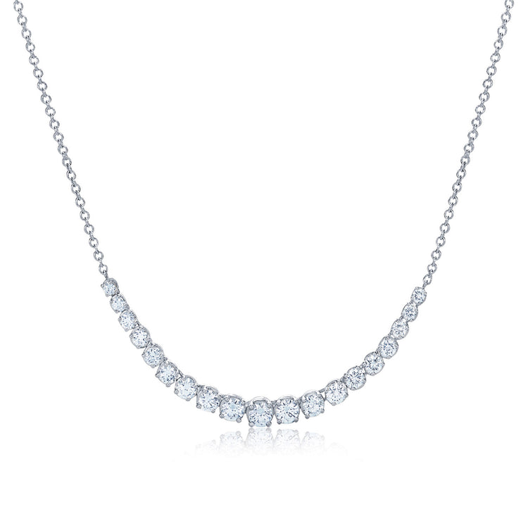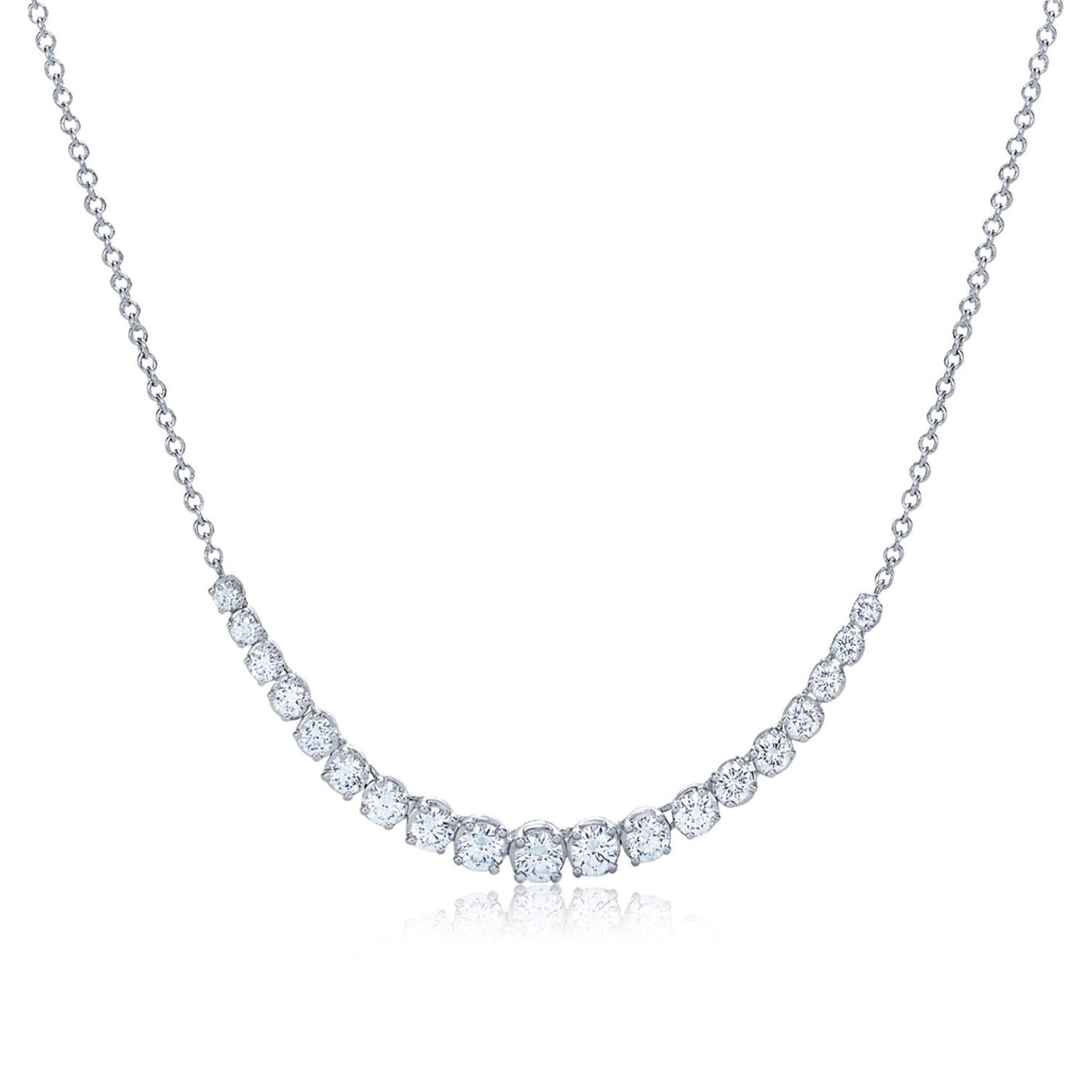 A diamond line necklace is an iconic essential that always remains relevant. This graduated demi-strand is easy to wear every day, alone or layered with other necklaces or pendants. Kwiat diamonds exceed the GIA standards for an Excellent cut, ensuring that every stone looks bigger and brighter. The fluid construction epitomizes superb Kwiat engineering and craftsmanship; each diamond is connected by minimal, unnoticeable links in a lightweight 18k white gold design that lies beautifully against the skin without twisting or flipping over.