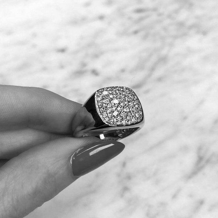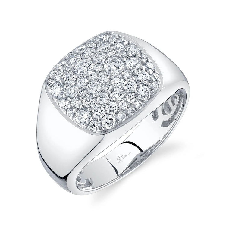 Show off your style with this Diamond Pavé Signet Ring, exquisitely crafted from 14k white gold and adorned with over a carat of dazzling pavé set round brilliant diamonds. You'll love the timeless refinement of this bold statement piece!