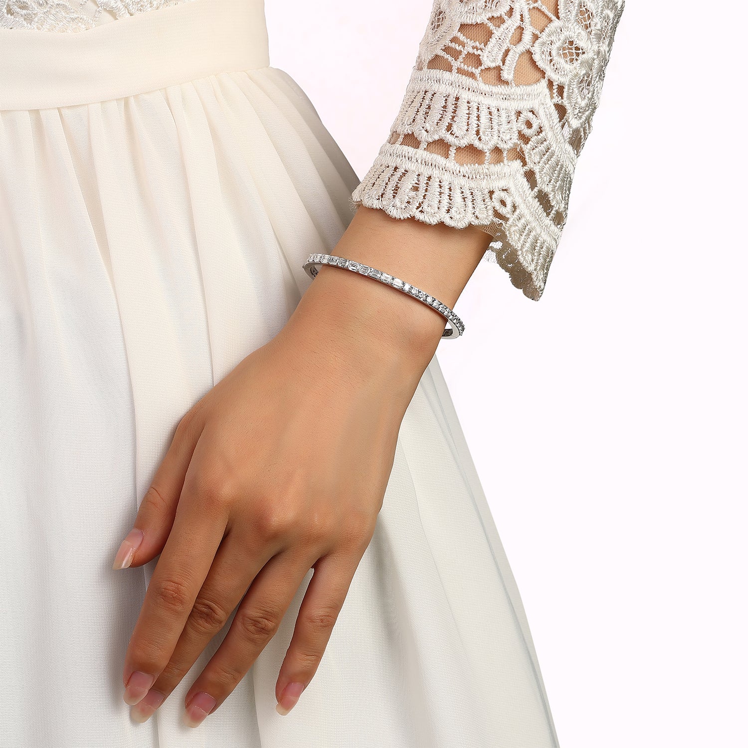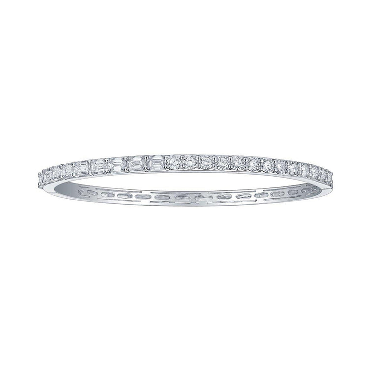 Let your wrist shine with this elegant lab grown diamond bangle. Crafted from 14k white gold, it's adorned with gorgeous lab grown diamonds for a timeless, luxurious look. Show off your unique style with this stunning solo piece or add it to your favorite stack.