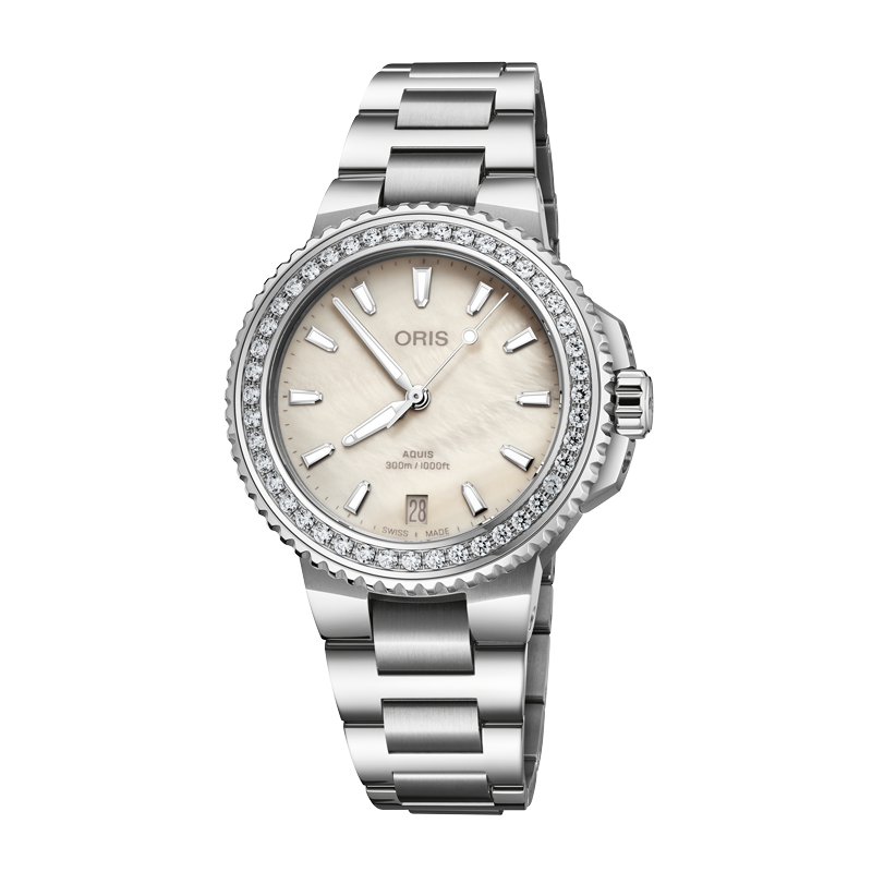 At base, the Aquis Date Diamonds 36.50 mm is a high-performing dive watch, good for 30 bar (300 metres) of water resistance. But this model offers glamour, too, with a crème mother-of-pearl dial and lab-grown diamonds set into its bezel.