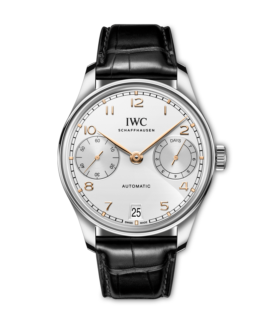 The origins of the Portugieser date back to the late 1930s, when IWC Schaffhausen used a high-precision pocket watch movement to create a distinctively large wristwatch with chronometer precision. First introduced in 2000, the Portugieser Automatic 42 features an open, balanced dial, with a power reserve indicator at 3 o’clock and the small seconds positioned on the opposite side at 9 o’clock.