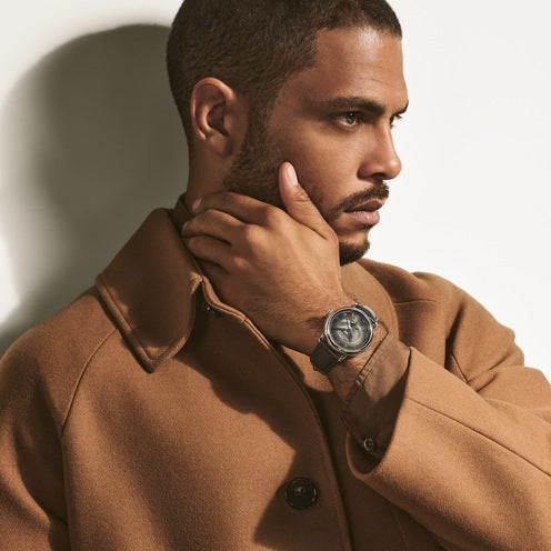 The Montblanc Star Legacy Full Calendar takes the Maison's finest design codes to a new level of elegance. The timepiece presents a sfumato anthracite dial with exploding star guilloché motif, a filet sauté, rhodium-coated Roman numerals, leaf-shaped hands and indicates the hours, minutes and seconds as well as the day, date, month and moonphase in a simple elegant way. This model is powered by the MB 24.30 automatic movement and is housed in a 42 mm stainless steel, pebble-shaped case fitted with an open case back offering a view on the oscillating weight decorated with the Montblanc emblem. The anthracite interchangeable calf leather strap has been specially designed by Montblanc's Artistic Director Marco Tomasetta who found inspiration in the Maison's writing instrument nibs for its pointed shape, enhanced with a vertical sfumato effect.