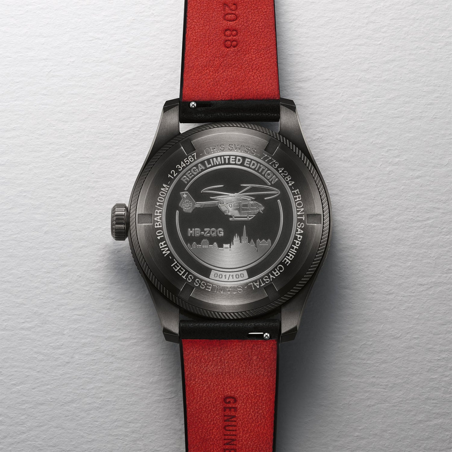 This version of the Rega Fleet Limited Edition has a case back engraved with an Airbus Rega rescue helicopter H145 and the registration HB-ZQN. Here’s some information about the aircraft: