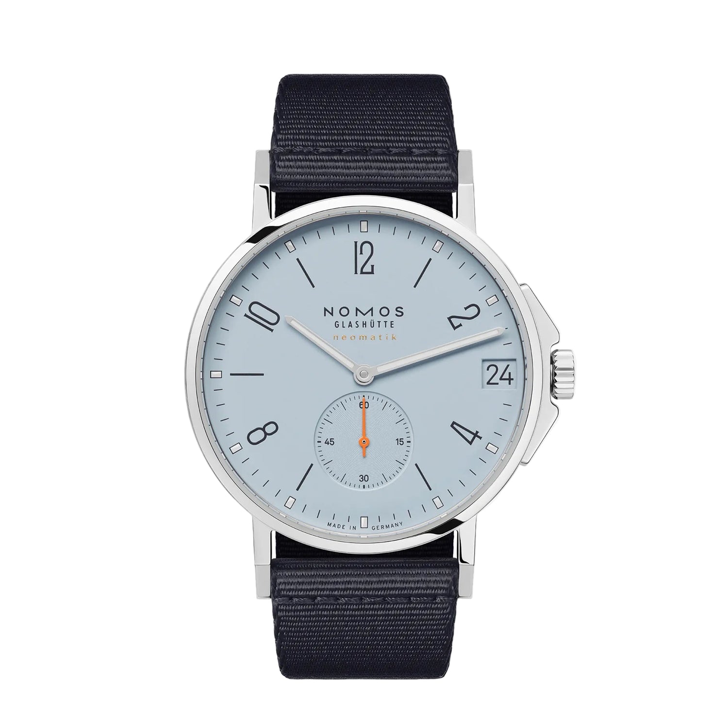 A sports watch with sophistication. Automatic and water resistant, you can jump into the pool with it on your wrist and check the time under water. A watch that fits every wrist and always suits individuality. Ahoi neomatik 38 date stands for complete freedom, all the time. This highly precise timepiece features a proprietary escapement, the NOMOS swing system, and a patented NOMOS date mechanism in refreshing sky blue. Ahoi neomatik 38 date sky is a mechanical watch for connoisseurs, free spirits with high aspirations, and adventurous people with style.