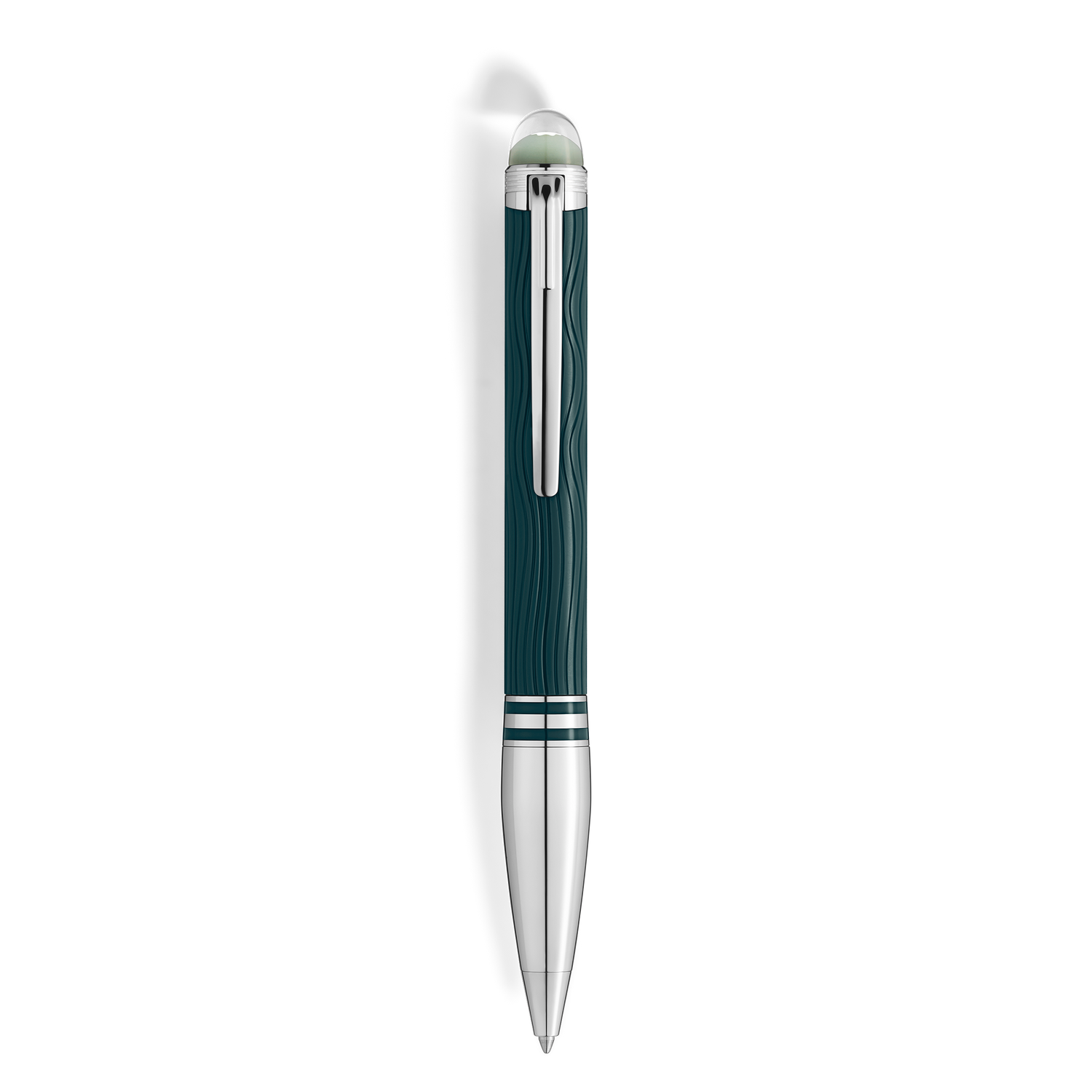 StarWalker PolarGreen brings the beauty of the Northern Lights to life. On Earth, humans can gaze skyward and be transported to realms of wonder as they witness their grand spectacle. The dome on the cap top is made of transparent resin and glows in low light, recalling the enchanting dancing auroras of the night sky. The wave pattern on the dark green precious resin of the barrel admirably captures the spectral sheen of the lights, and the matte finish accentuates the seemly reflections. The dark green resin rings of the forepart enhance the platinum-coated fittings of the Ballpoint.