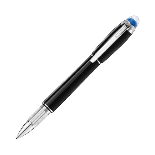 The new StarWalker is about walking amid the stars. It's about exploring the cosmos and foreign galaxies. about being part of one of the most mysterious and powerful of human kind’s adventures: space exploration. The collection's new design celebrates the immense emotion. described by all space travelers. of seeing our blue planet floating in the vast expanse of space. The unique StarWalker emblem technology features a blue translucent dome beneath the Montblanc emblem. reminiscent of the Earth emerging above the lunar horizon. The StarWalker Precious Resin comes with platinum-coated fittings and a black precious resin barrel and cap.