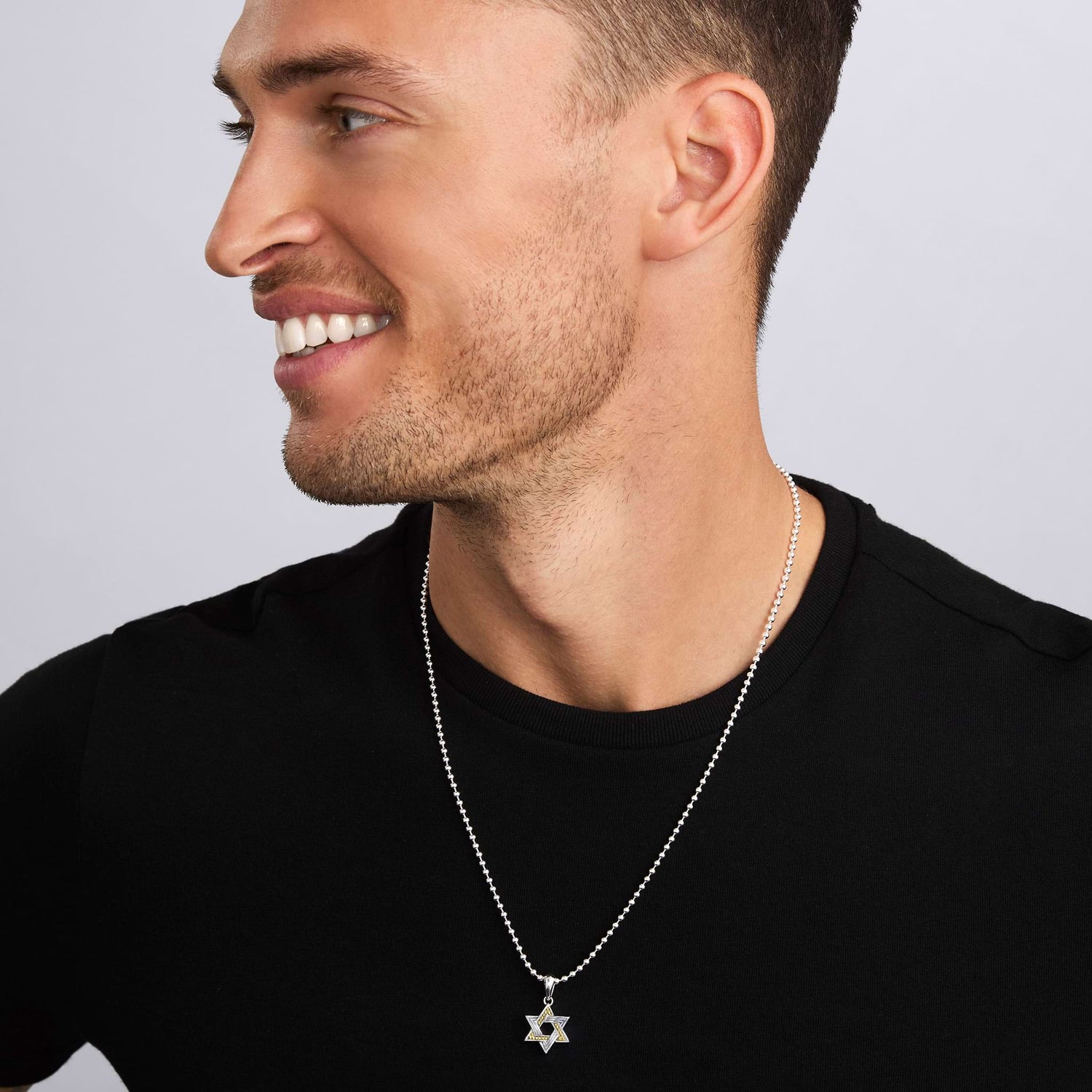 18K gold and sterling silver form this intricate Star of David amulet. Wear it proudly as a symbol of faith, style, and tradition.