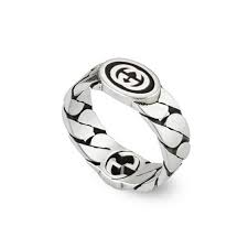 STSLVR GUCCI BLACK ENAMEL INTERLOCKING G RING