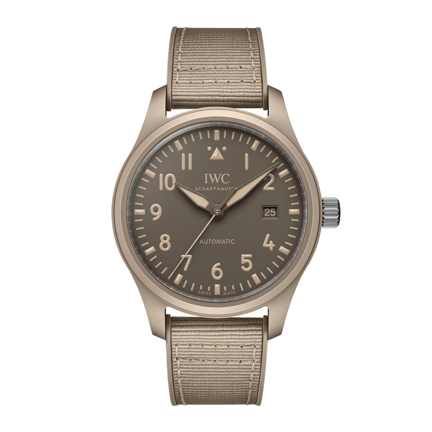 The Pilot’s Watch Automatic 41 TOP GUN Mojave Desert features a meticulously crafted 41-millimeter case made from sand-colored ceramic. The ceramic color “Mojave Desert” is inspired by Navy pilots’ flight suits and the desert landscape around the Naval Air Weapons Station China Lake, home to some of the Navy’s most skilled pilots.