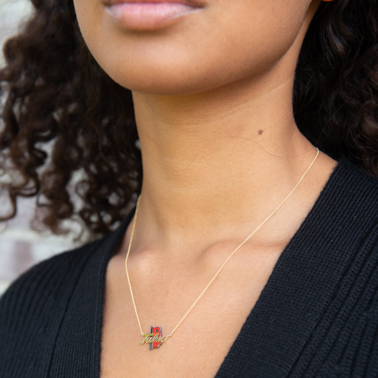 Look your best and show your pride in The University of Tulsa with this stunning necklace. Crafted from 14k yellow gold, it boasts eye-catching red enamel. Perfect for any Golden Hurricane fan, alum, or parent, get yours today!