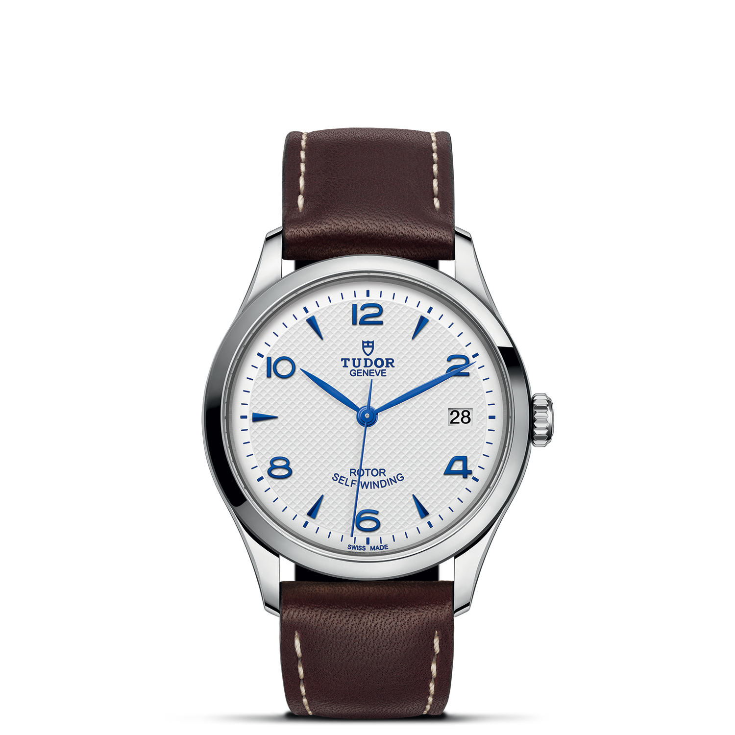 36mm steel case, Opaline and blue dial