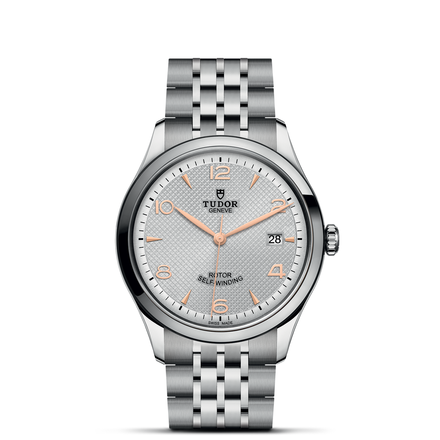 39mm steel case, Silver dial