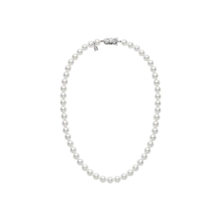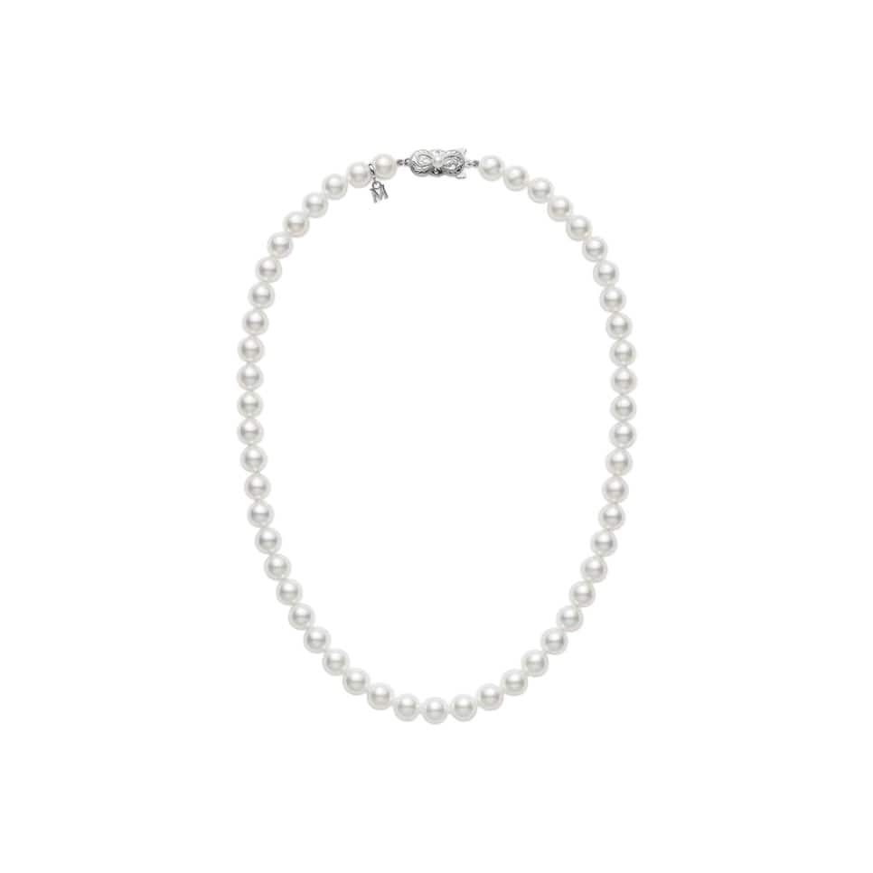 Each of Mikimoto's cultured pearl strands are a work of art born from the mystery of the sea. Creation of these strands requires incredible skill, judgment and craftsmanship. The journey begins with a rigorous selection process, culling the very best quality pearls. This 16” Akoya cultured pearl strand features 6.5x6mm Akoya cultured pearls with a Mikimoto signature clasp in 18K white gold. An ideal look or gift for any occasion.