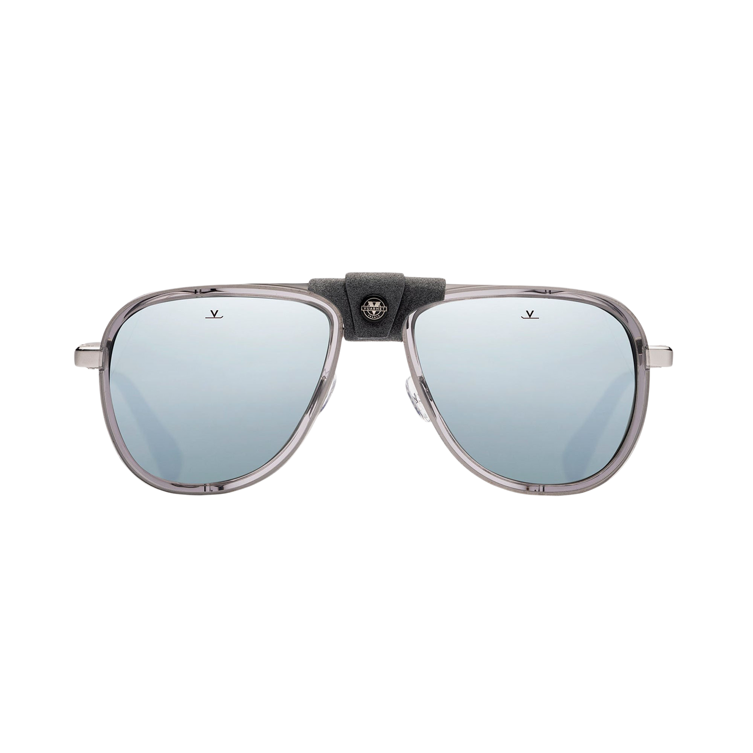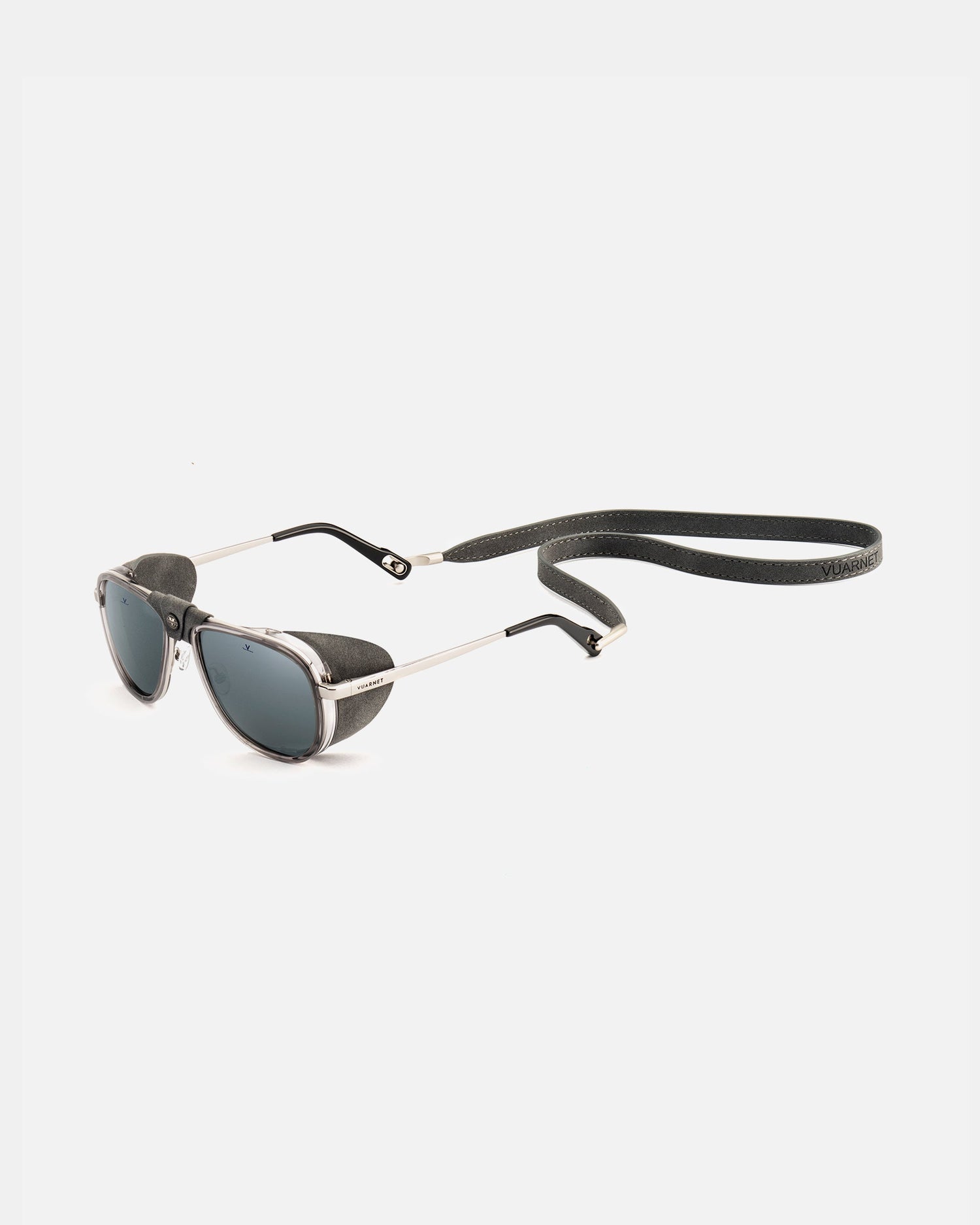 Vuarnet Glacier is a mountain icon. Pilot shape, removable side shields and nose bridge, the Glacier Regular protects from the very strong intensity of the sun on the highest peaks. The frame is made of titanium, beta-titanium and bio-acetate, and the accessories are in leather. Mineral glass lenses provide the ultimate protection against intense alpine lighting conditions.
