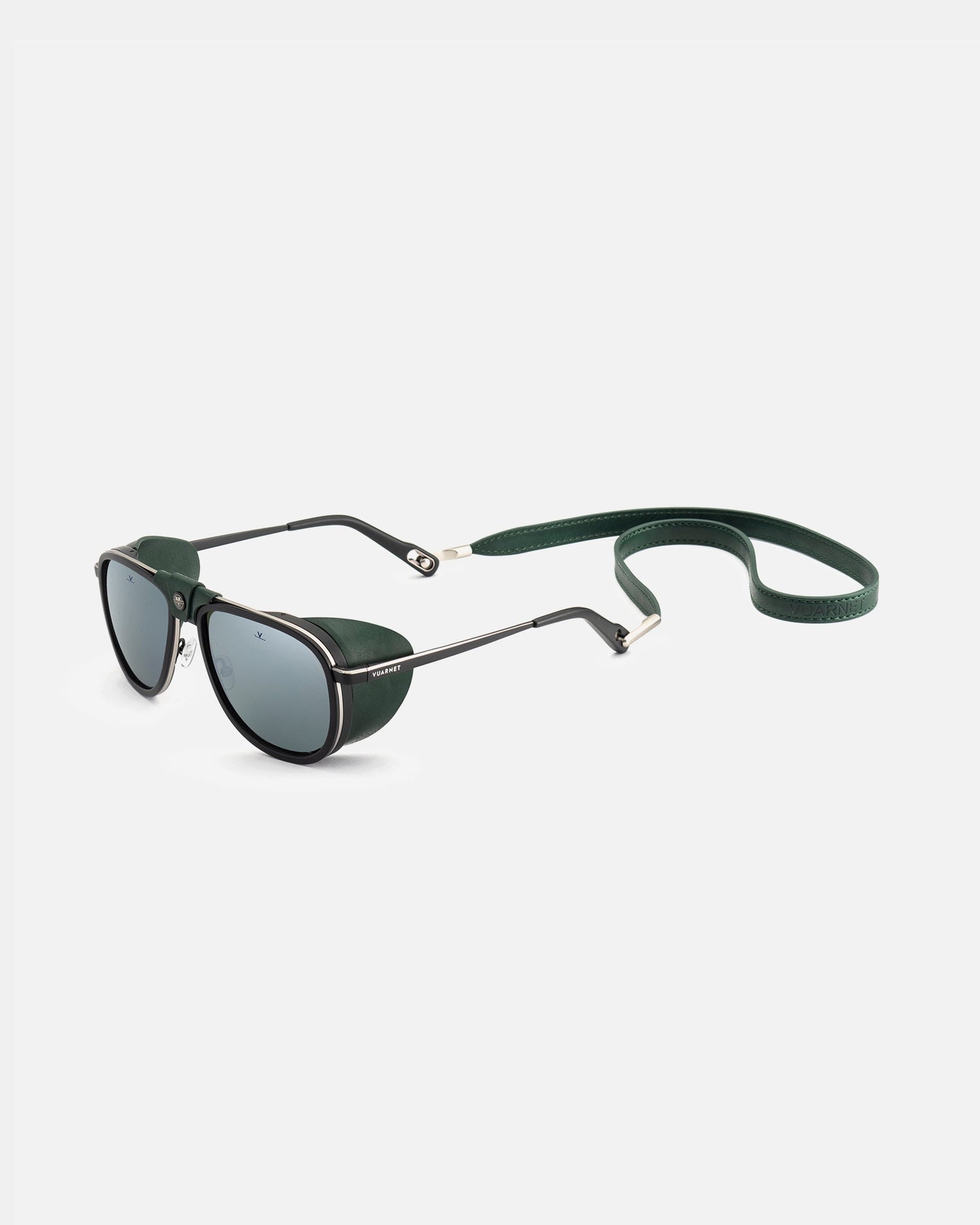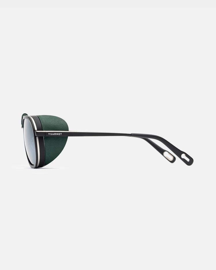 Vuarnet Glacier is a mountain icon. Pilot shape, removable side shields and nose bridge, the Glacier Regular protects from the very strong intensity of the sun on the highest peaks. The frame is made of titanium, beta-titanium and bio-acetate, and the accessories are in leather. Mineral glass lenses provide the ultimate protection against intense alpine lighting conditions.