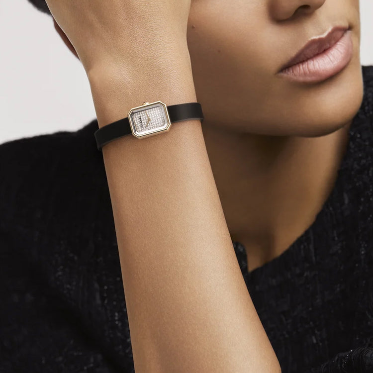 Yellow gold and titanium, black rubber strap with velvet touch, diamond dial